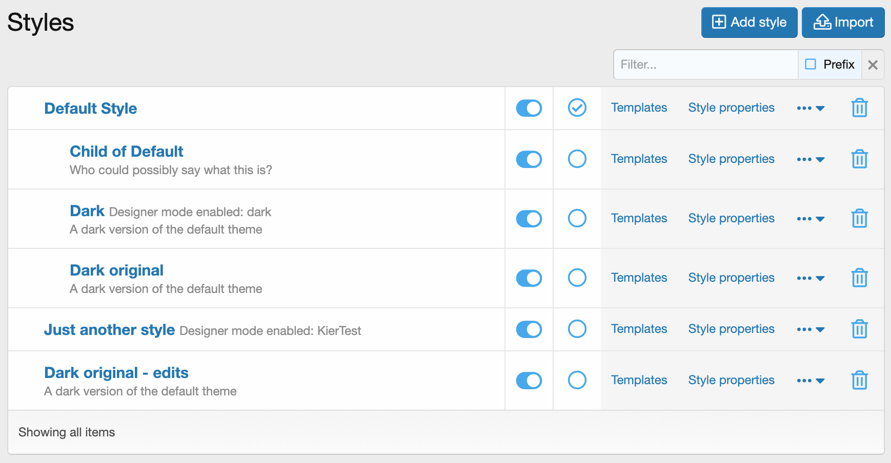 Importing and exporting complex styles with custom graphics is a breeze with XenForo's style archive format.