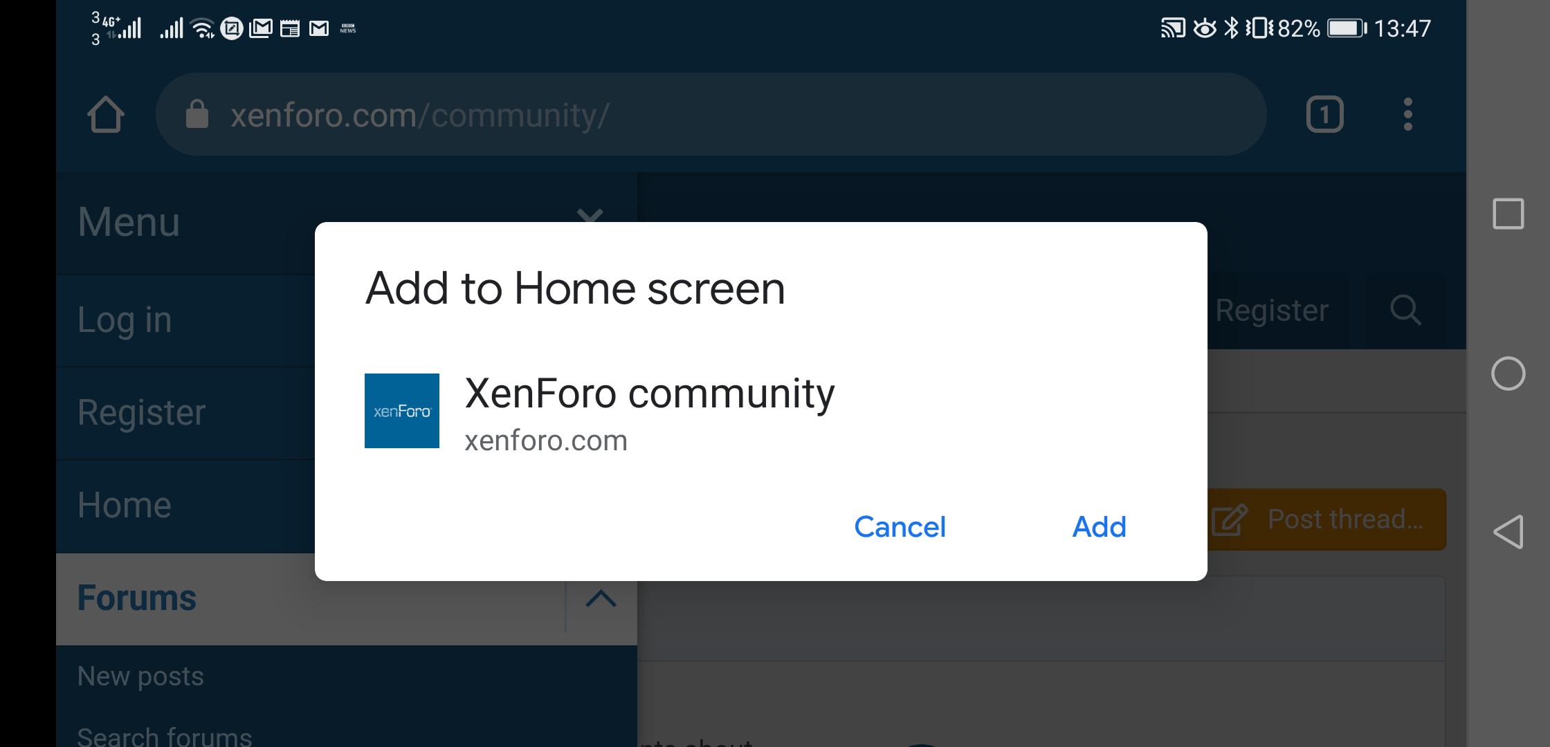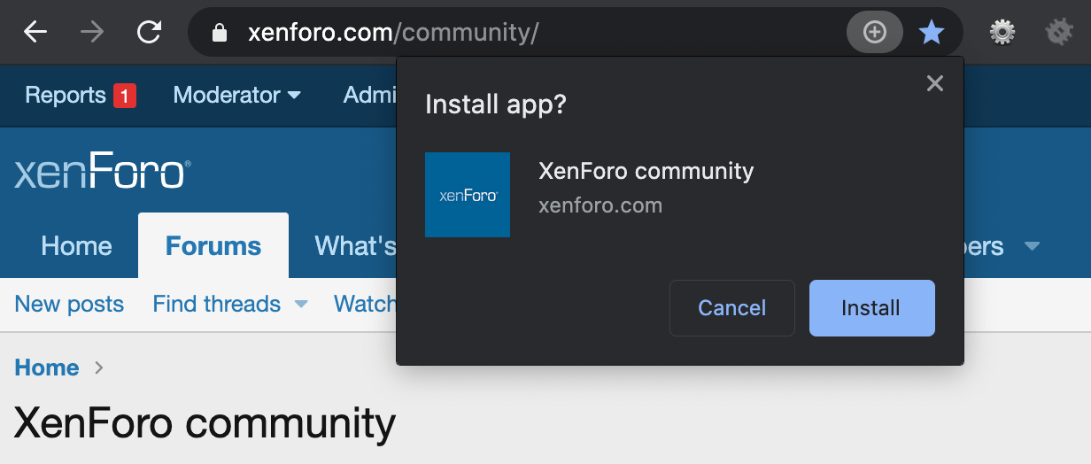 The XenForo app can be installed straight from your visitors' browser with a simple 'Install the app' button.1